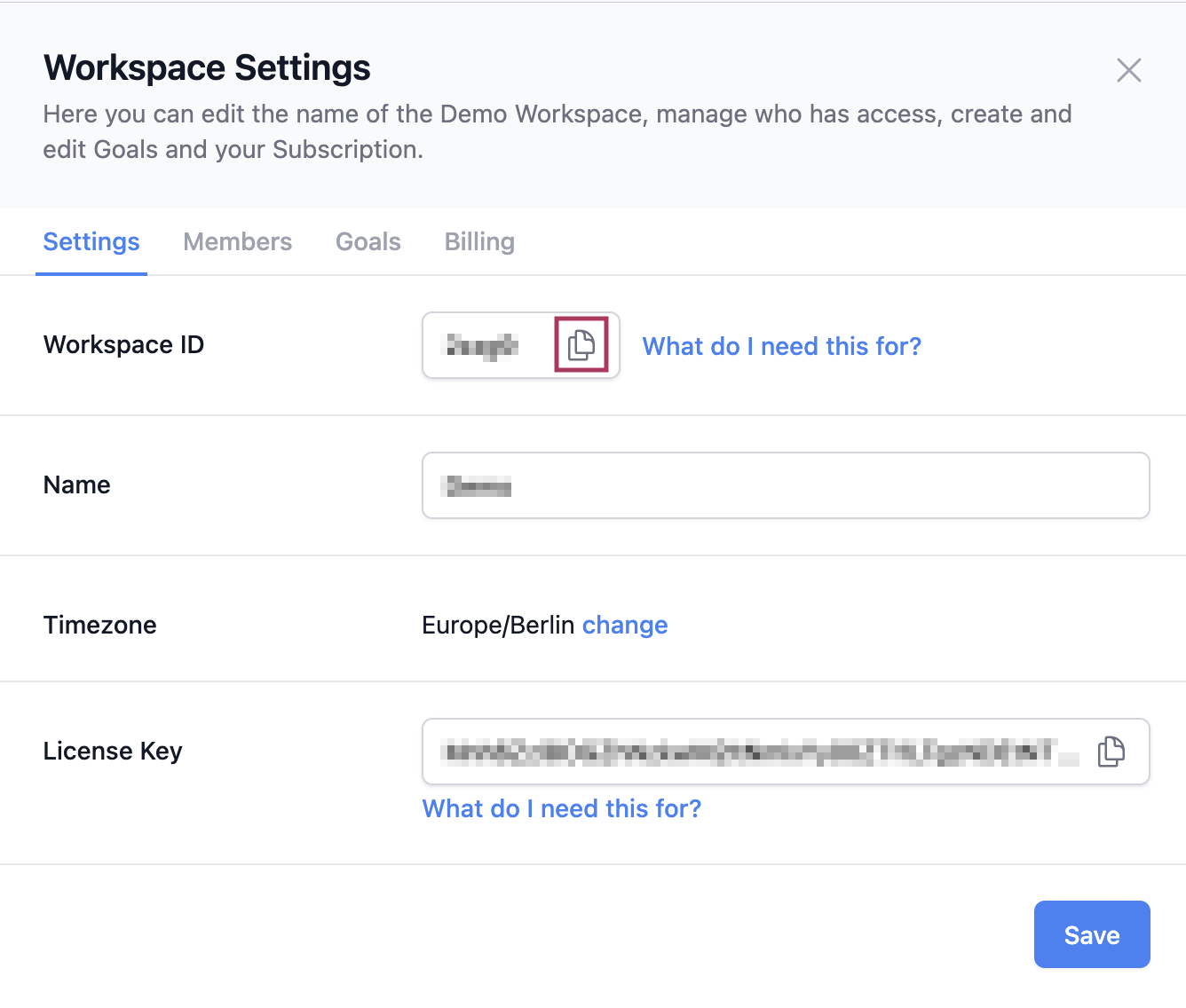 A screenshot showing the Workspace ID section in the Workspace Settings Copy your Workspace ID. It will be a short string of characters and numbers.